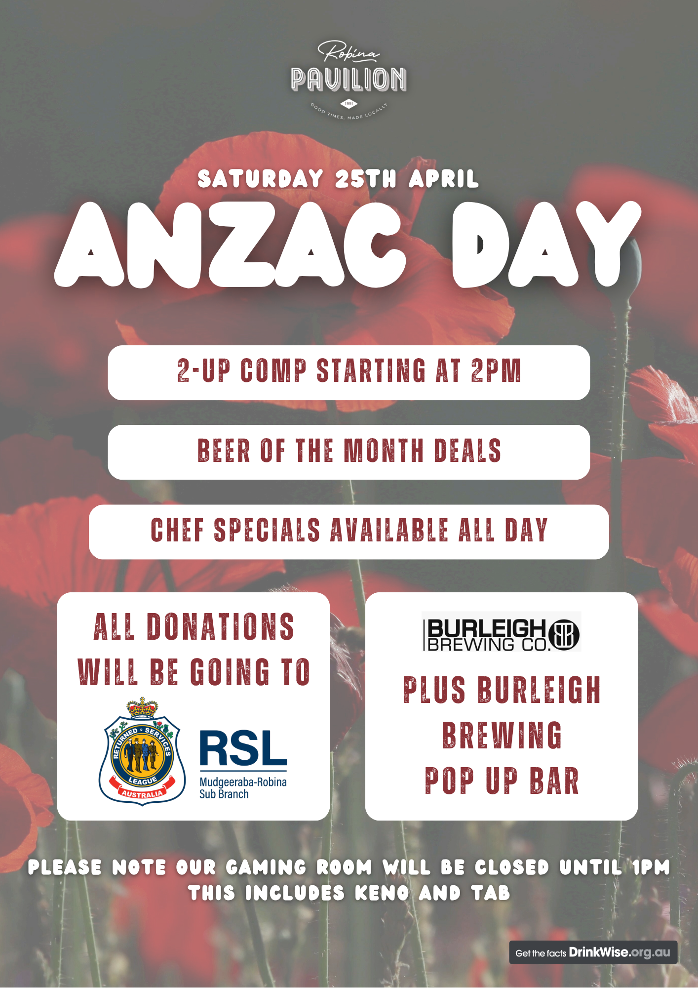Back to All Events Anzac Day 2026 Saturday, April 25, 2026 10:00 AM 11:00 PM Google Calendar ICS reserve your table